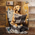 Golden Retriever On the Toilet With Newspaper Metal Sign 8×10 Inch